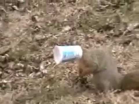 squirrel head stuck in yogurt cup